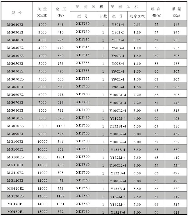 變風量風機箱(變風量機箱)技術性參數(E式為皮帶轉動)