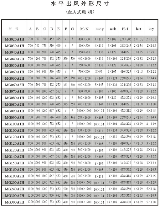 變風量風機箱技術性參數(A式為電機直聯)
