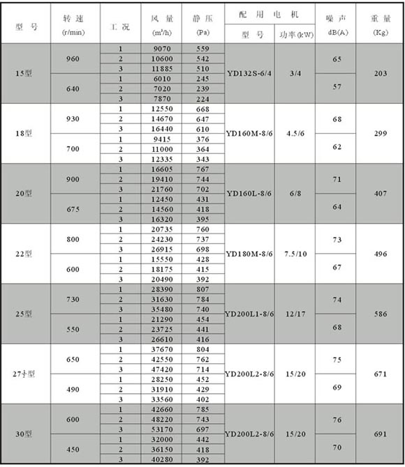 HTFC-II-no15-30#節能低噪聲風相箱性能參數(雙速)