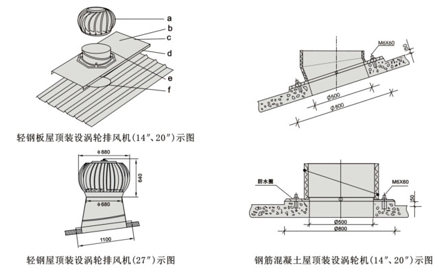 二、DWT-Ⅳ(無(wú)電機(jī),無(wú)動(dòng)力風(fēng)機(jī))屋頂渦輪排風(fēng)機(jī)屋面安裝示圖說(shuō)明
