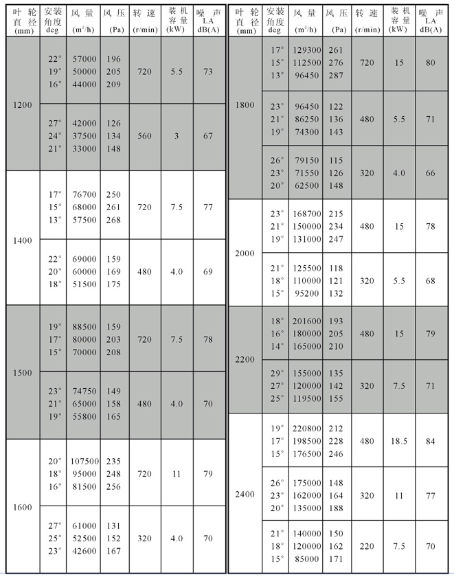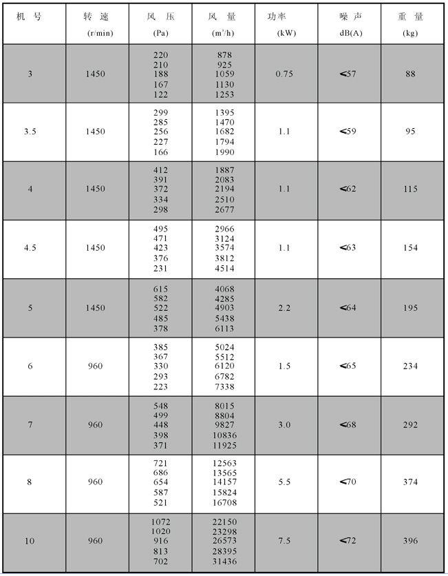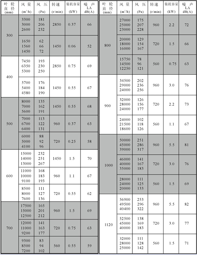 規(guī) 格: 風(fēng)量:1380~220000 m3/h,風(fēng)壓150~1000Pa。