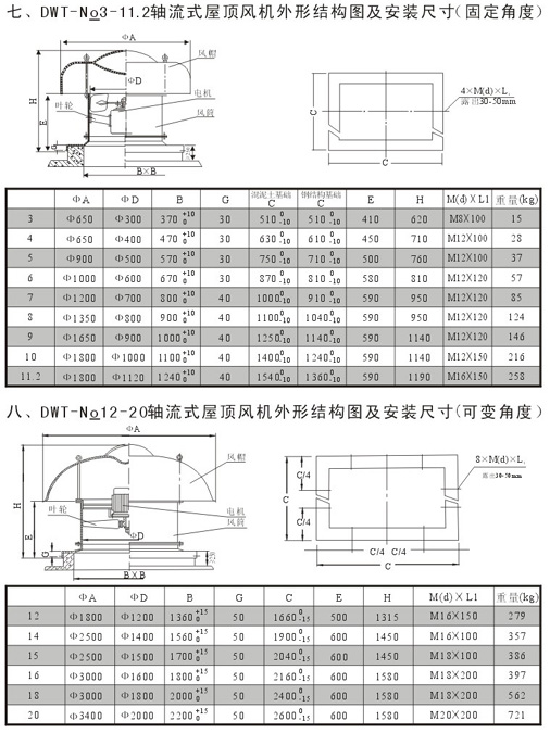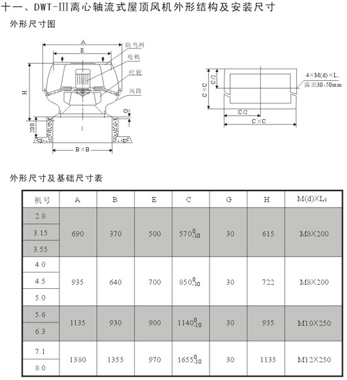 | DWT-III型離心式屋頂通風(fēng)機(jī)性能參數(shù)表 |