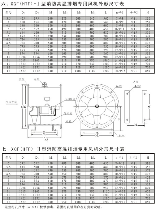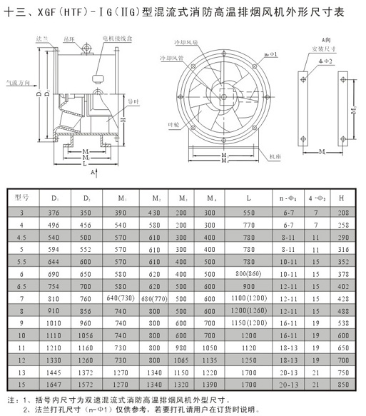 XGF(HTF)-IIG型混流式消防高溫排煙風機性能參數表