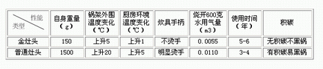 節能灶頭與普通灶頭使用性能對比表