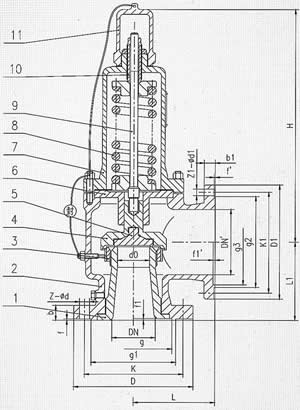 彈簧全啟封閉式安全閥的外形尺寸和連接尺寸,請接洽我們索取。