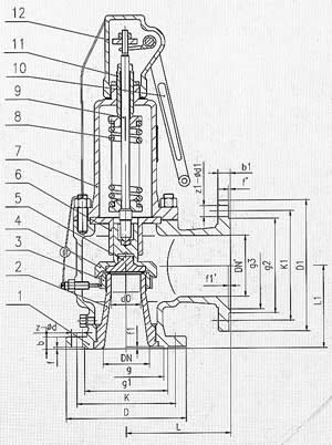 帶扳手彈簧全啟式安全閥A48Y型實用于工作溫度≤350℃的蒸汽、空氣等介質的設備和管路上。A44Y實用于工作溫度≤300℃的空氣、石油等介質的設備或管路上,作為超壓保護裝置。連接法蘭尺度PN<6.4MPa按JB/T-94系列1。PN≥6.4MPa按JB/T-94系列2尺度。