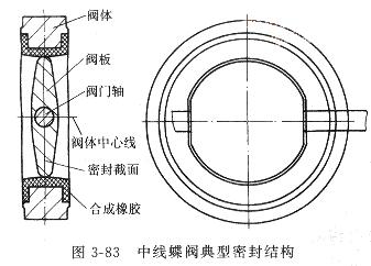 1.中線蝶閥的密封原理 中線蝶閥的典范密封結構如圖3-83所示。