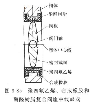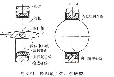 圖3-85所示密封結構采用了聚四氟乙烯、合成橡膠和酚醛樹脂構成復合閥座,使閥座在具有彈性的同時強度更好。