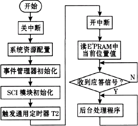 軟件重要分為2部分:一部分在主程序中實(shí)現(xiàn),包含DSP的系統(tǒng)設(shè)置、事件治理器初始化、常量初始化、使能DSP中斷、電動(dòng)履行器系統(tǒng)初始化以及啟動(dòng)后臺(tái)服務(wù)程序等功效;另一部分是后臺(tái)服務(wù)程序,它是一個(gè)簡(jiǎn)略的無限循環(huán)程序,一些低優(yōu)先級(jí)的過程包含速度盤算、地位更新和液晶顯示等在后臺(tái)服務(wù)程序中以查詢狀態(tài)標(biāo)記的方法被履行。主程序流程見圖7。