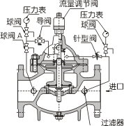 當(dāng)閥門從進(jìn)口端給水時(shí),水流過針閥進(jìn)進(jìn)主閥把持室,并經(jīng)過導(dǎo)閥、球閥流出主閥把持室到出口,此時(shí)主閥處于全開或浮動(dòng)狀態(tài)。調(diào)定主閥上部的流量調(diào)節(jié)閥,可為主閥設(shè)定必定開度。調(diào)節(jié)針閥開度和調(diào)節(jié)導(dǎo)閥彈簧壓力,即可使主閥開度保持在設(shè)定開度,并在壓力變更時(shí)導(dǎo)閥進(jìn)行主動(dòng)調(diào)節(jié),保持流量不變。