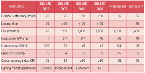 自從白光()于2000年始達(dá)到每瓦15~20流明的水平后,各國(guó)就開(kāi)始積極對(duì)LED投進(jìn)研發(fā)制造,而相關(guān)市場(chǎng)推廣、技術(shù)評(píng)鑒機(jī)構(gòu)及學(xué)界,則積極對(duì)此極具未來(lái)性的產(chǎn)品進(jìn)行譯碼,一探其奧秘及貿(mào)易價(jià)值,并陸續(xù)提出負(fù)面疑問(wèn)或爆炸性的前瞻猜測(cè)。 但隨著能源短缺、地球熱化、能源材料價(jià)格上揚(yáng)等因素深受各國(guó)政府重視,更加速LED的市場(chǎng)熱度,其二為隨著手機(jī)白色于2003年被廣泛應(yīng)用,隨即奠定藍(lán)光激發(fā)產(chǎn)生在市場(chǎng)的價(jià)值,更因LED應(yīng)用在車(chē)尾燈可達(dá)到快速反應(yīng)、減少更換及設(shè)計(jì)上增加產(chǎn)業(yè)產(chǎn)品美學(xué)的新思維,漸漸開(kāi)拓另一個(gè)市場(chǎng)應(yīng)用契機(jī),進(jìn)而激勵(lì)相關(guān)供給鏈廠(chǎng)商的研發(fā)投進(jìn)。 固然在2003年時(shí),LED亮度效能未能達(dá)到主的需求(表1),但已逐漸讓世界留意到LED的未來(lái)性及對(duì)傳統(tǒng)光源的威脅性。 表寧波生活商家1 OIDA對(duì)于2002~2020年LED效能預(yù)估