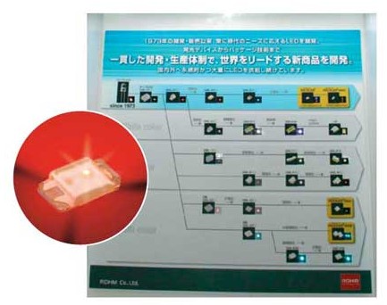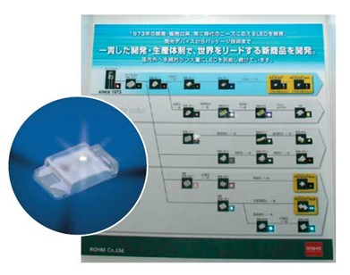 由日本電氣化學產業與大和產業開發。右為安裝LED封裝的示例。經過Cu突起將LED元件將熒光體直接涂布到芯片上的構造與采用原有構造但改變熒光體粒子大小的方法進行的比較。
