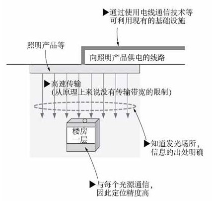 指利用肉眼看得見的“可視光”傳遞信息的通訊技術。主要利用照明用具和信號機等顯示設備以及汽車車燈等配備發光二極管(LED)的設備發出的可視光,通過改變其頻率,或令其閃爍來發送數據。優點是不存在利用無線通訊時需要的頻率分配題目。在通訊速度上,LED燈遠遠高于熒光燈。
