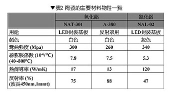 表2是陶瓷的主要材料物性一覽,除此之外陶瓷耐熱性與耐光線劣化性也比樹脂優(yōu)秀。