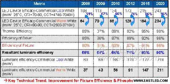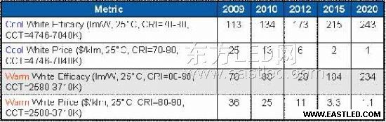 (Source: US DOE SSL R&D, Multi-Year Program Plan, March 2010, table 4.4 & 4.5)
