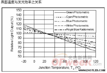 當LED熱源無法有效導出,將導致LED界面溫度(Junction Temperature)升高,隨之影響到的將是光的輸出效率遞減。