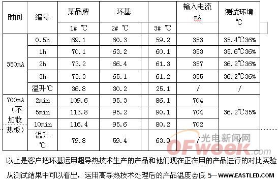 由此實驗數據可以看出應用不同導熱系數鋁基板,燈的溫度會有20度左右差距,環基超高導熱鋁基板比所比擬的廠商的鋁基板的燈溫低20左右攝氏度, 有非常好的導熱后果, 歡迎應用廠家測試提出可貴看法.
