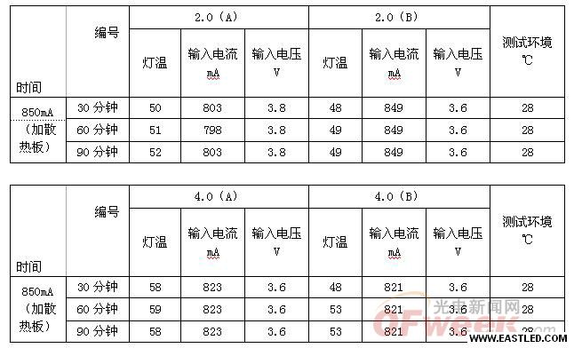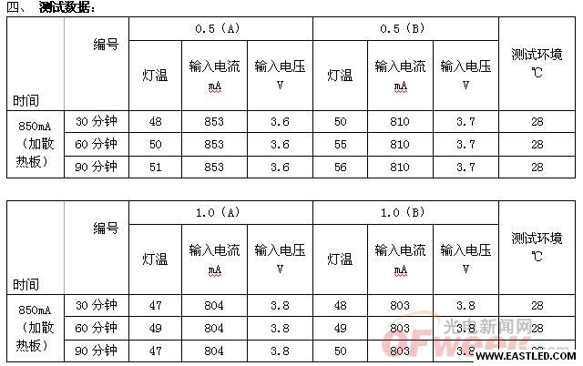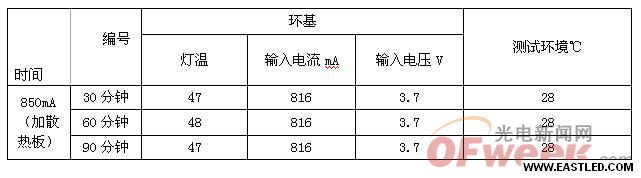 分辨輸進直流350mA 和700mA 電流,按照表格里面的條件進行工作,并記錄溫度(在