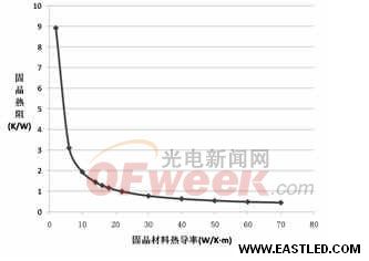 圖(3) 固晶熱阻隨固晶材料熱導率的變更(固晶層厚25微米)