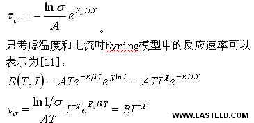 對通過必定外加應力情況下老化,得到了不同應力下功率型發光二極管的壽命,利用反應速率模型推斷出發光二極管的壽命隨溫度或電流的變更,對于猜測不同種類和質量的LED的壽命是一個較為可靠的參考。