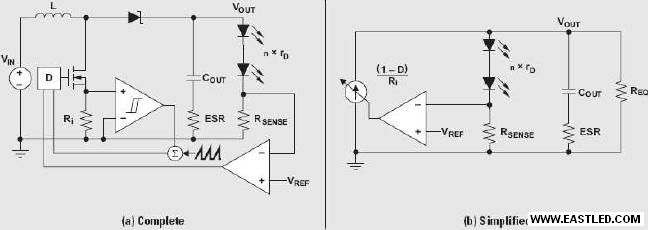 數(shù)學模型一直都有助于判定特定設(shè)計的最佳補償組件,然而,補償白光LED電流調(diào)節(jié)升壓轉(zhuǎn)換器的情況,則與補償被設(shè)定為調(diào)節(jié)電壓的雷同轉(zhuǎn)換器略微不同。以傳統(tǒng)的方法丈量把持回路相當不便,由于回饋(FB)引腳的阻抗不高,而且缺乏上端FB電阻。在Ray Ridley 展現(xiàn)了簡易小信號把持回路模型,實用于具備電流模式把持的升壓轉(zhuǎn)換器。下文闡明Ridley 模型應如何修正才干實用于白光LED 電流調(diào)節(jié)升壓轉(zhuǎn)換器,同時,也將闡明如何丈量升壓轉(zhuǎn)換器的把持回路。