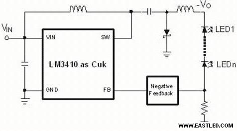 很少被用作電壓調節的Cuk轉換器作為LED驅動而嶄露頭角。輸進和輸出電流都是持續的。輸出電壓的極性就像高端buck-boost一樣被反置,但是輸出電容像buck轉換器一樣被打消。除Buck-boost和boost以外,Cuk是擁有這種才能的唯一的實用型非隔離調節器。