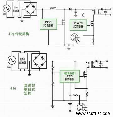 圖2:需要PFC的LED驅(qū)動(dòng)利用中不同架構(gòu)對(duì)照。