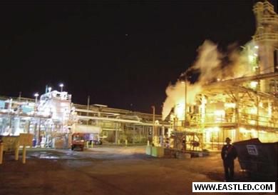 圖3:具有高亮度白光LED燈與高壓鈉燈照明的提煉廠