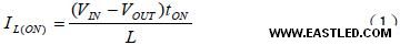 公式(1)和(2)定義了輸出負載上的最大紋波電流。假如定義了可接收的紋波電流IL、開關(guān)頻率SW1(1/T)、電源電壓VIN 和目標(biāo)輸出電壓VOUT,則可以通過公式(1)和(3)盤算出所需的電感值。@@@@@@@@@@