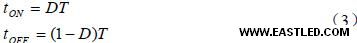 其中tOFF 是SW1 打開的時間。VD 表現(xiàn)二極管上的電壓。假設(shè)tON 與tOFF 之和是開關(guān)時間的總是非T,那么tON 亦可以盤算為: