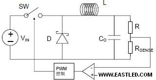 人們一般采用轉(zhuǎn)換模式調(diào)節(jié)方法而不是直線調(diào)節(jié)方法來驅(qū)動HB-LED。開關(guān)調(diào)節(jié)器有著更高的功效轉(zhuǎn)換效率及較適實用于數(shù)字設(shè)計上。
