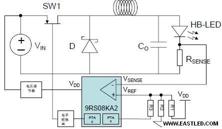 HB-LED 驅(qū)動需要恒定電源。它通常需要閉環(huán)把持。有時系統(tǒng)采用電池供電,電池電壓會隨時間而不斷降落。在電池電量全部用完之前,需要反饋把持回路來保持恒定的驅(qū)動電流。此外HB-LED 的正向電壓VF 會隨四周環(huán)境溫度的變更而變更,因此需要閉環(huán)把持來補償VF 的變更,以便保持正向電流IF 以及HB-LED 亮度的穩(wěn)固。