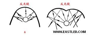 鈉燈球面光源特征,其兩翼展開的亮度光效率的有效利用,反射罩的質量決定著燈具的整體效率,也取決于反射罩的氧化壽命(光源腔體的溫度接近200℃左右)。一般的反射器由于陽極化處理的瓶頸,經過光源腔的高溫烘烤,很快變色,反光后果加速下降,工作一段時間后大部分的光線在中間段,易造成暗區形成斑馬效應。 燈具的殼體是起散熱、防護功效,其流線型的造型設計需具備道路照明防風阻請求。因其氣體放電燈的局限性,造型多為“蛇頭狀”功效性照明燈具。