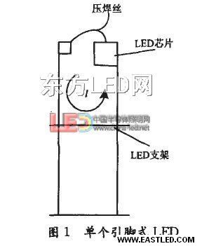 在LED引腳式封裝過(guò)程中,每個(gè)LED芯片是被固定在引線(xiàn)支架上的,LED芯片通過(guò)壓焊金絲(鋁絲)與引線(xiàn)支架形成了閉合回路,如圖1。若疏忽引線(xiàn)支架電阻,LED支架回路光電流即是芯片光生電流IL。可見(jiàn),當(dāng)p-n結(jié)材料和摻雜濃度必定時(shí),支架回路光電流與光照強(qiáng)度I成正比。