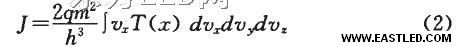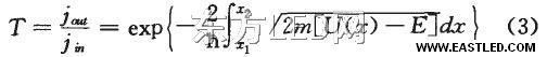 其中q為電子電量,m為電子質(zhì)量,矗為普朗克常數(shù),vx、vy、vz分辨是電子在x、y、z方向的隧穿速度,T(x)為電子的隧穿概率。又任意勢(shì)壘的電子隧穿概率可表現(xiàn)為[13]
