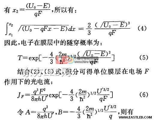 ,x指向?yàn)樾酒姌O表面到壓焊點(diǎn),為膜層中z方向任意點(diǎn)的勢(shì)壘,E是垂直芯片電極表面速度為vx電子的能量。