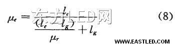 式中,μe磁芯的有效磁導(dǎo)率,脅為磁芯的相對(duì)磁導(dǎo)率,μr為磁芯的有效磁路長(zhǎng)度,名為非閉合氣隙長(zhǎng)度。