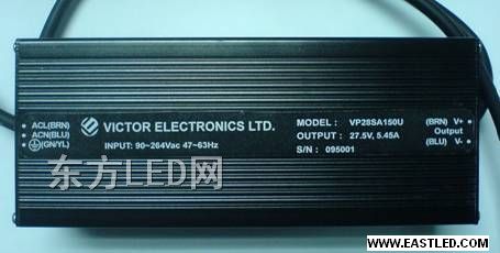 其中AC/DC恒壓源采用了香港煒達公司的VP28SA150U恒壓源。其最大輸出功率為150W瓦,輸出電壓為28V直流,最大輸出電流為5.36A。其效率高達92%,功率因素高達0.99以上。外形圖如照片所示。