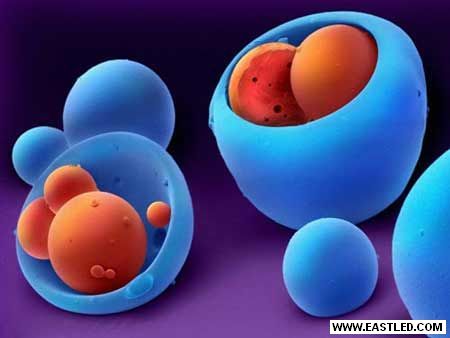 顯微鏡下的藥物膠囊 共聚物又稱為共聚體,是由兩種或兩種以上不同單體經聚合反應而得的聚合物。共聚物可用于制作藥物膠囊,它負責裝載藥物微粒;聚合物不溶于酸性溶液,因此它們可用于制成藥物涂層,從而避免人體吞服藥物時藥物在胃中溶化,或者通過緩慢消溶聚合物,逐漸開釋藥物效率,減少服藥次數。 如圖所示,圖中橙色部分是藥物膠囊中的內部微粒。這種膠囊是脫氫皮質醇藥物,用于治療腸炎。外部呈藍色的顆粒是共聚物,負責裝載這些藥物微粒。圖片是由安妮-卡瓦納(AnnieCavanagh)供給的。